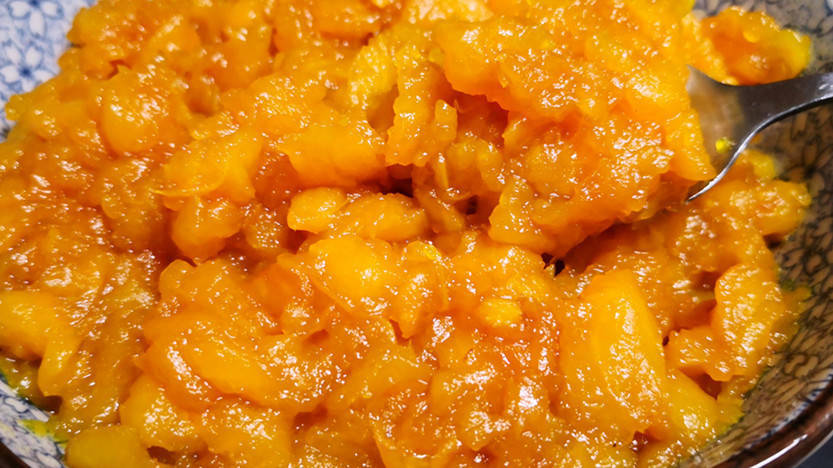 柿子当然还有一种经典吃法,那就是柿子果酱,做法可谓是简单,做好后放冰箱,能吃一冬天。具体做法如下:把柿子果肉挖出来,放入锅中,加入适量的冰糖和水,小火慢慢熬煮。在熬煮的过程中,用铲子不断搅拌,防止柿子糊锅。随着水分的减少,柿子会逐渐变得浓稠,香甜的味道也会弥漫在整个厨房。做好的柿子果酱可以涂抹在面包上,或者搭配酸奶食用,为早餐增添一份甜蜜。
